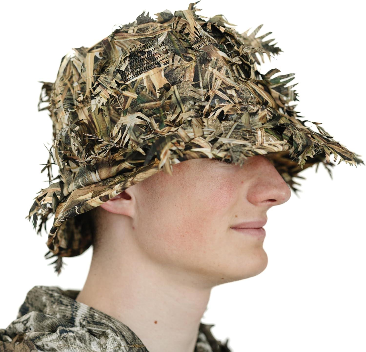 QuikCamo Realtree & Mossy Oak 3D Leafy Camo Face Mask Bucket Hat for Men Deer Duck and Turkey Hunting (Fully Adjustable OSFM)(Mossy Oak Shadow Grass Blades Camo)