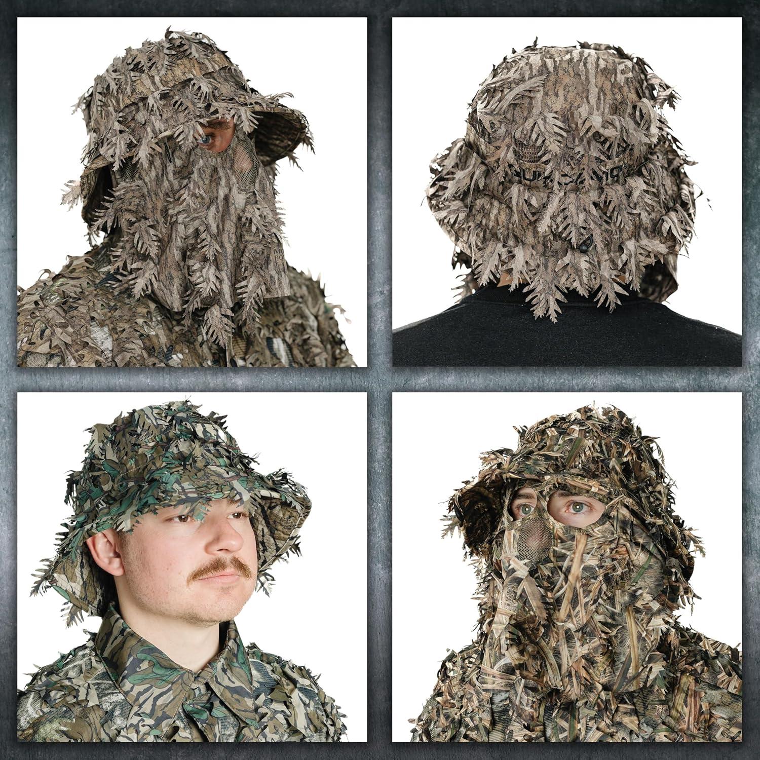 QuikCamo Realtree & Mossy Oak 3D Leafy Camo Face Mask Bucket Hat for Men Deer Duck and Turkey Hunting (Fully Adjustable OSFM)(Mossy Oak Original Bottomland Camo)