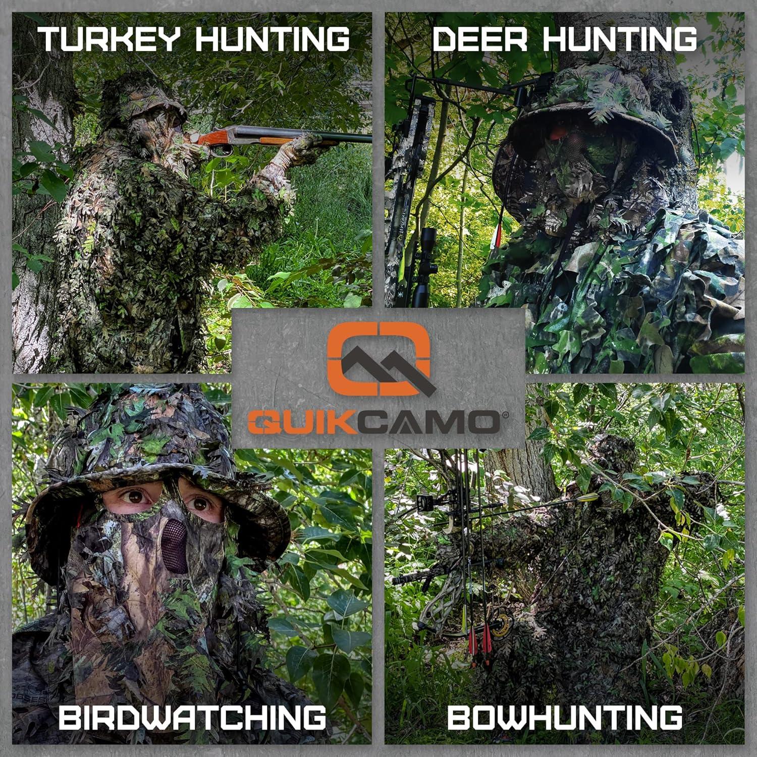 QuikCamo Realtree & Mossy Oak 3D Leafy Camo Face Mask Bucket Hat for Men Deer Duck and Turkey Hunting (Fully Adjustable OSFM)(Mossy Oak Greenleaf Camo)