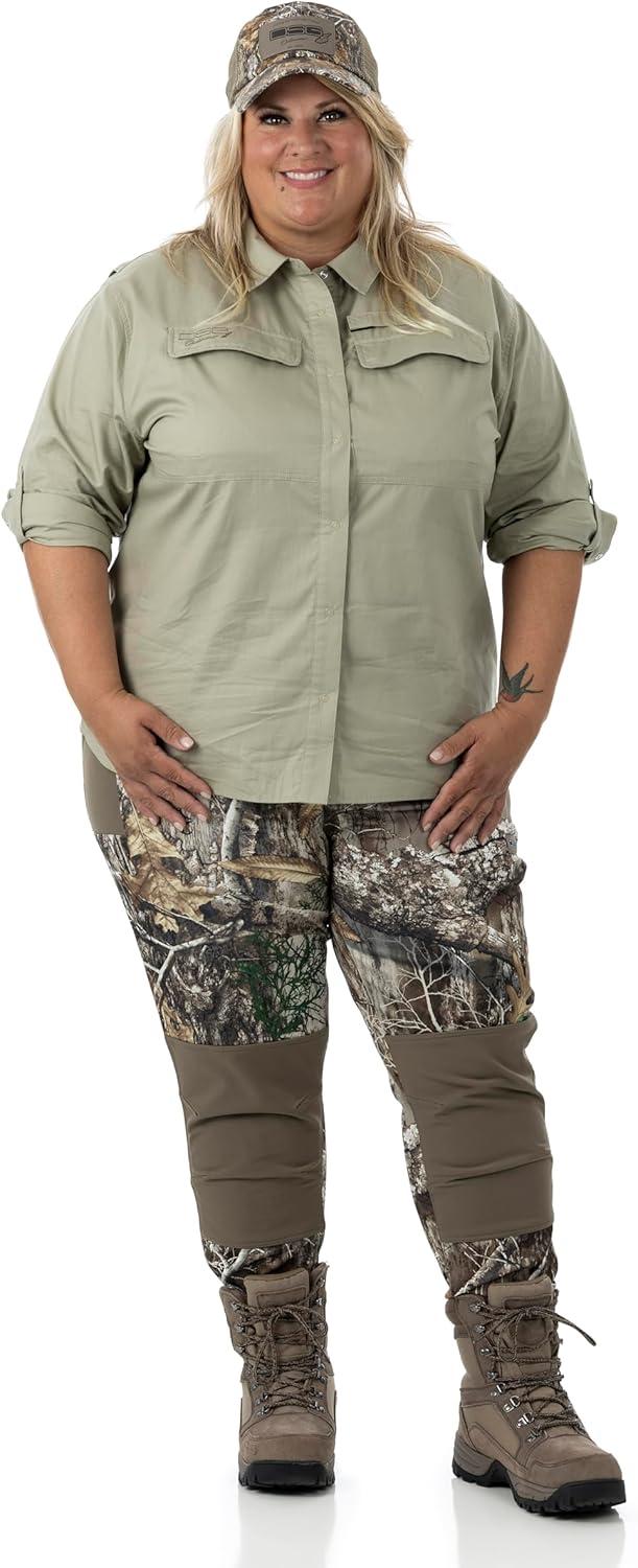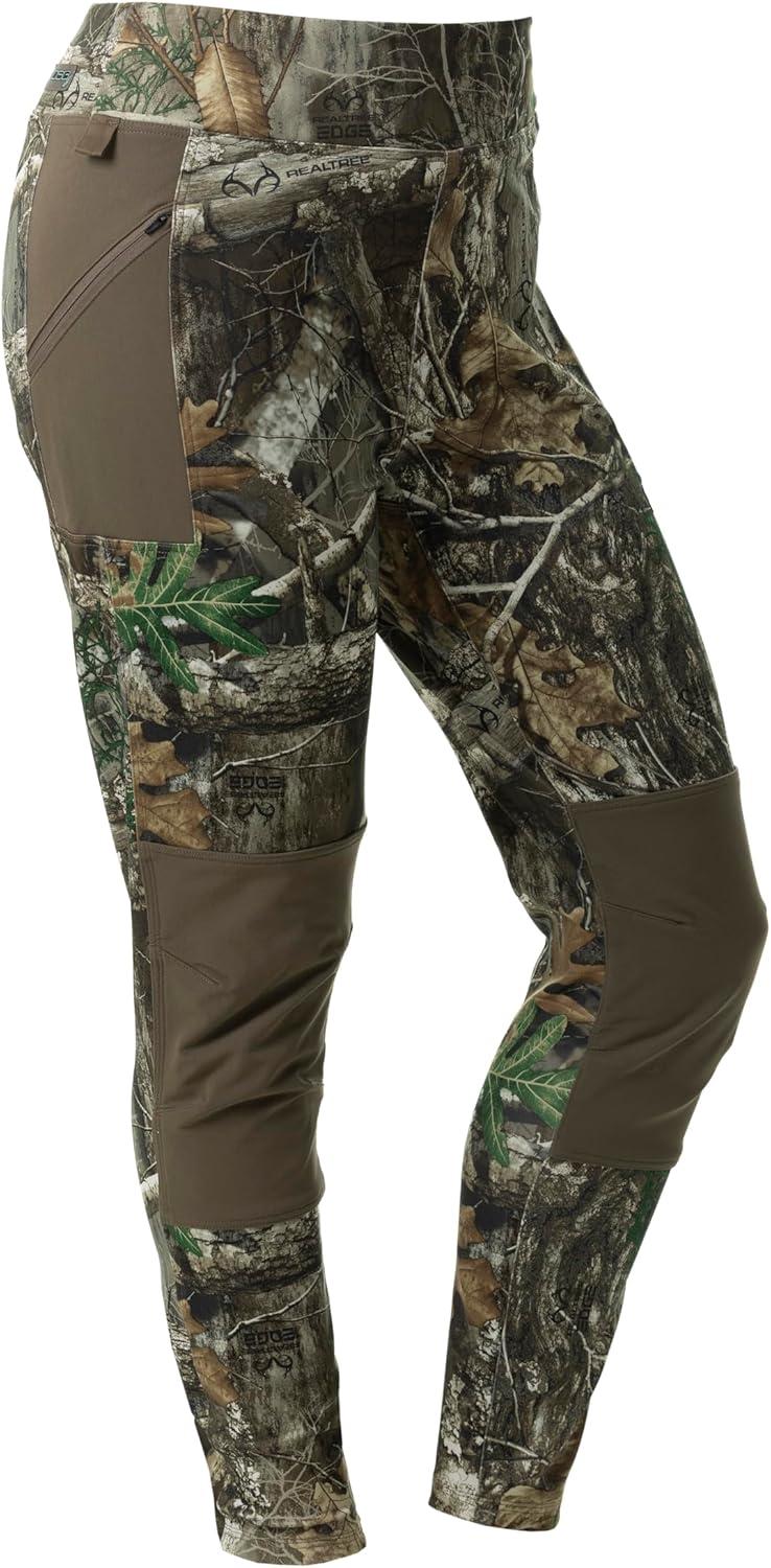 DOING SOMETHING GREAT Women’s Foraging Leggings | Hunting, DWR Treated, 4-Way Stretch, Articulating Knee Panels(Realtree Edge/Stone)