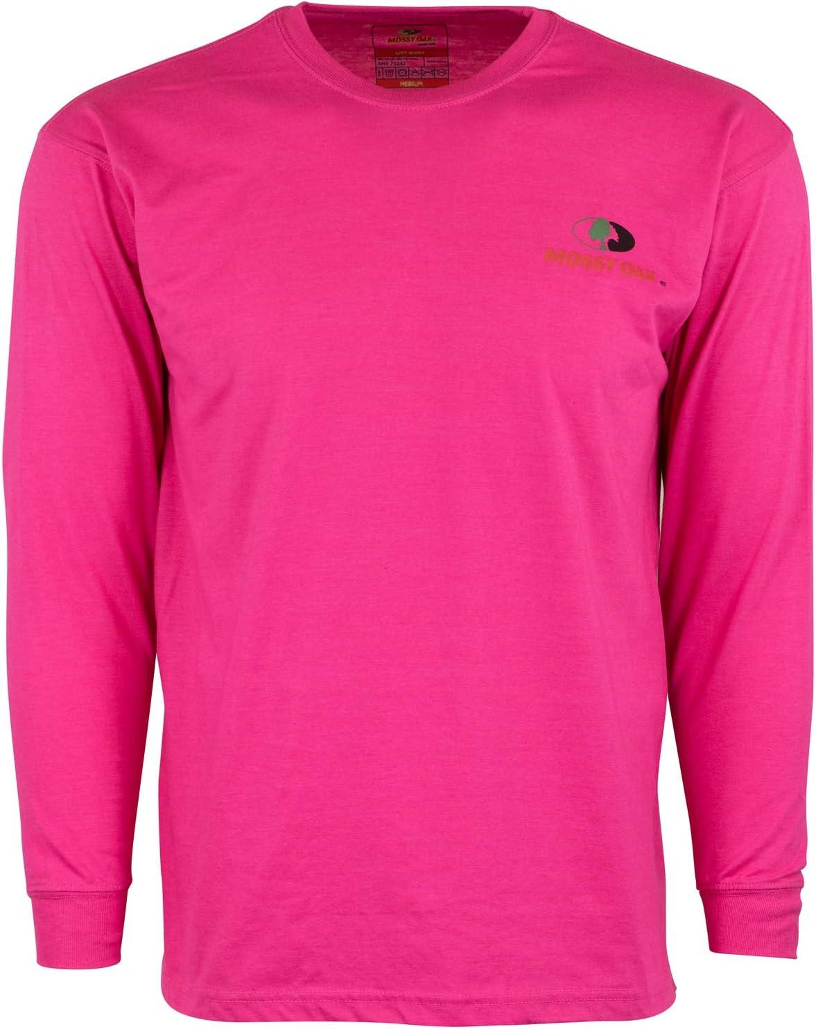 Mossy Oak Long Sleeve Traditional Logo Cotton Blend Unisex T-Shirt(Safety Pink)