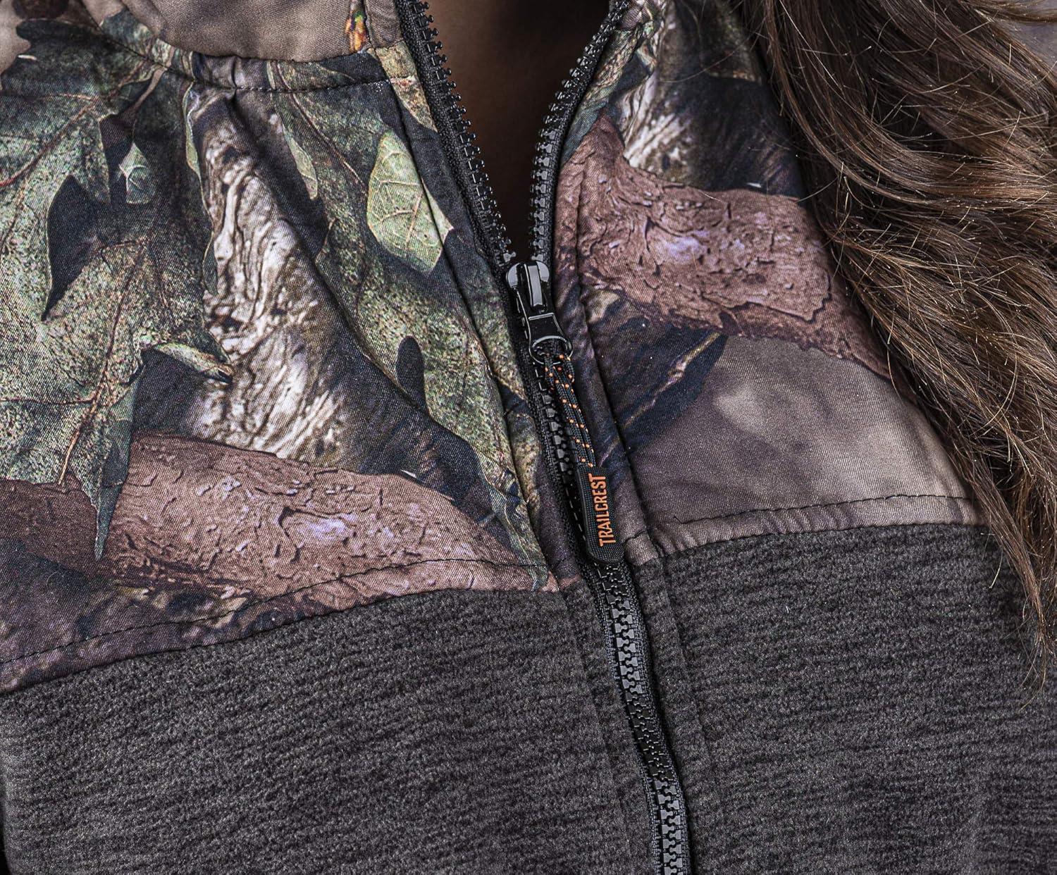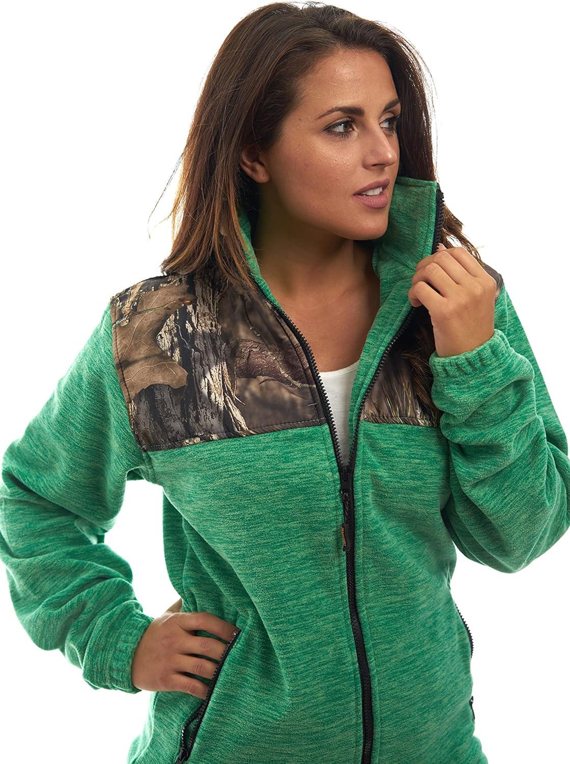 TrailCrest Women’s C-Max Full Zip Polar Fleece Jacket Mossy Oak Camo Patterns(Green Heather – Breakup Country)