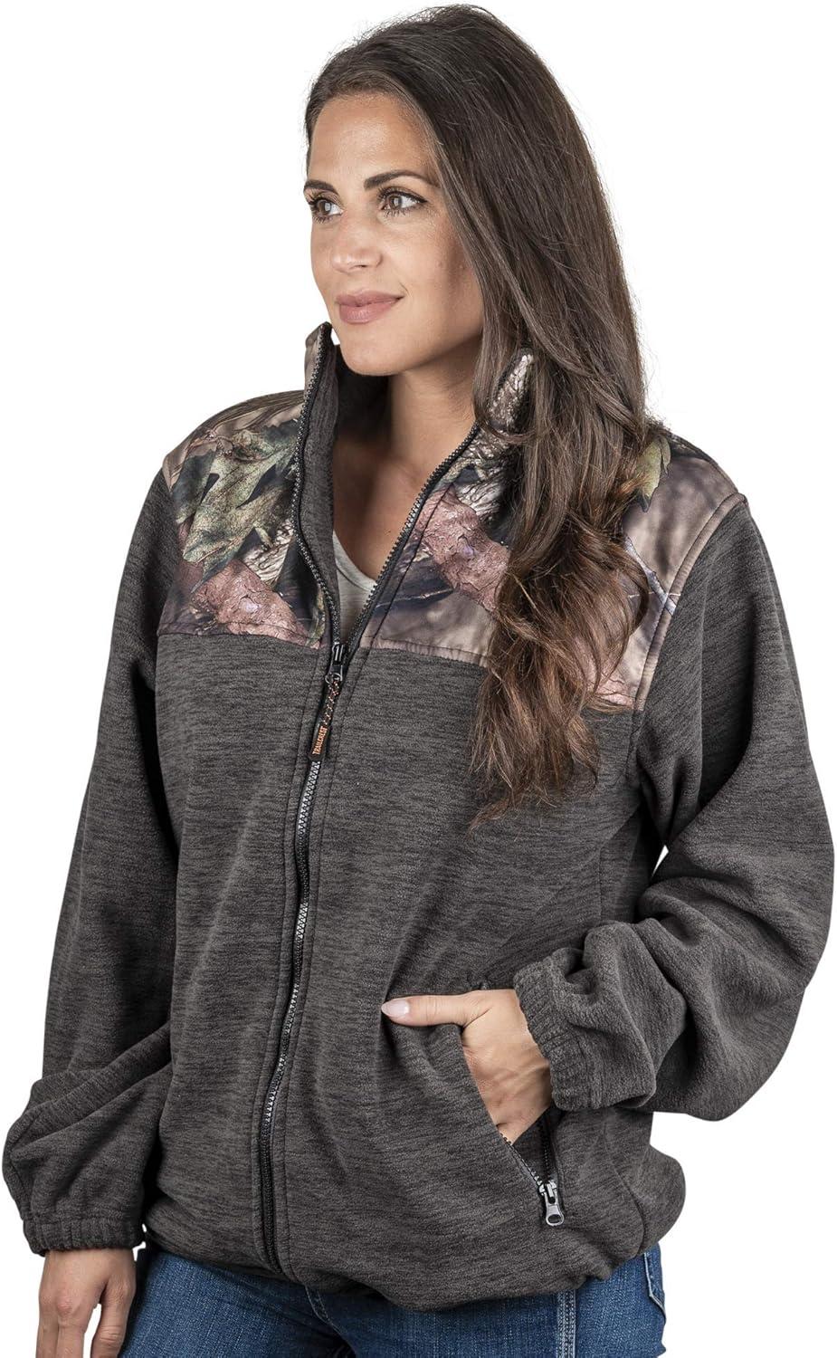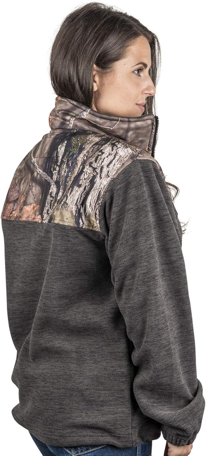 TrailCrest Women’s C-Max Full Zip Polar Fleece Jacket Mossy Oak Camo Patterns(Charcoal Heather – Country Dna)