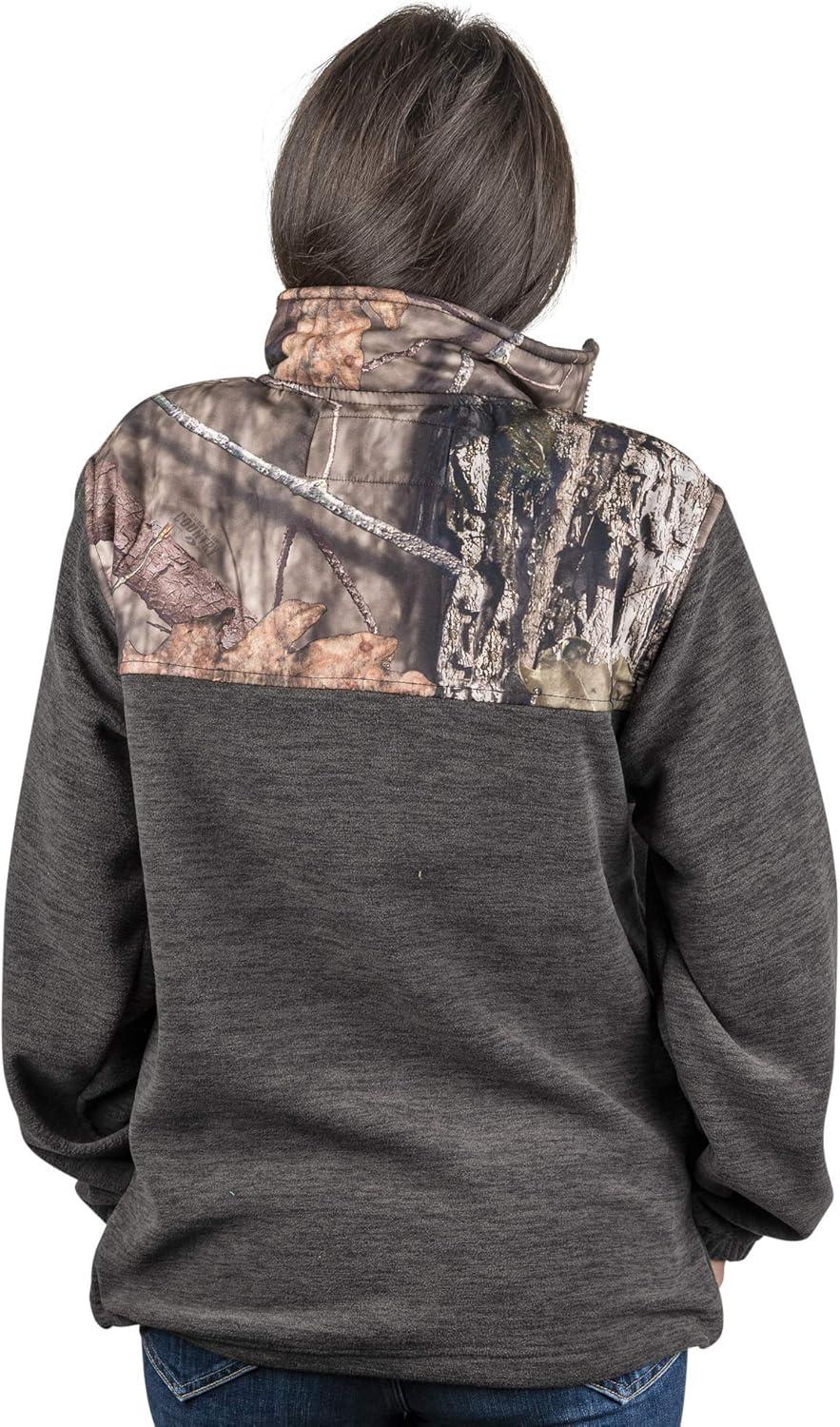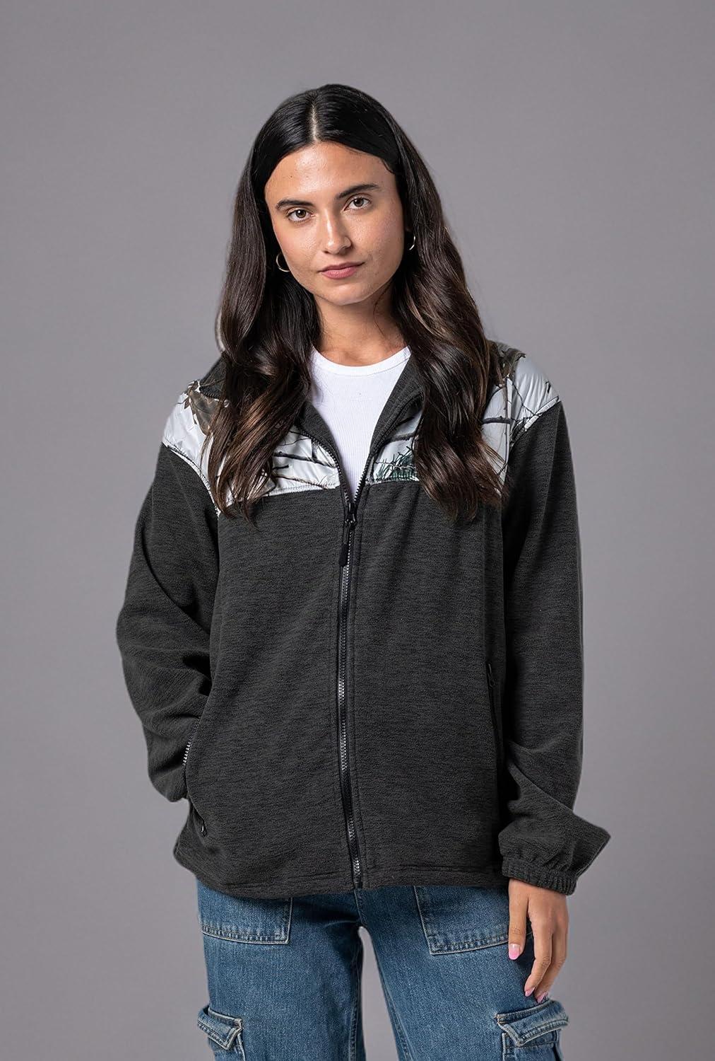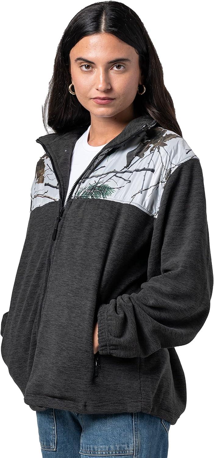 TrailCrest Women’s C-Max Full Zip Polar Fleece Jacket Mossy Oak Camo Patterns(Charcoal Heather -Snow Camo)