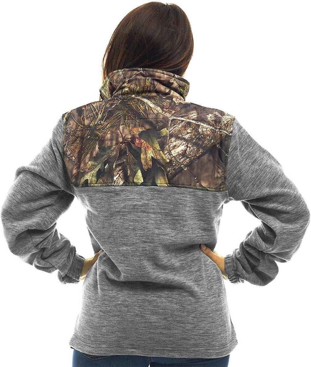 TrailCrest Women’s C-Max Full Zip Polar Fleece Jacket Mossy Oak Camo Patterns(Grey Heather – Country Dna)