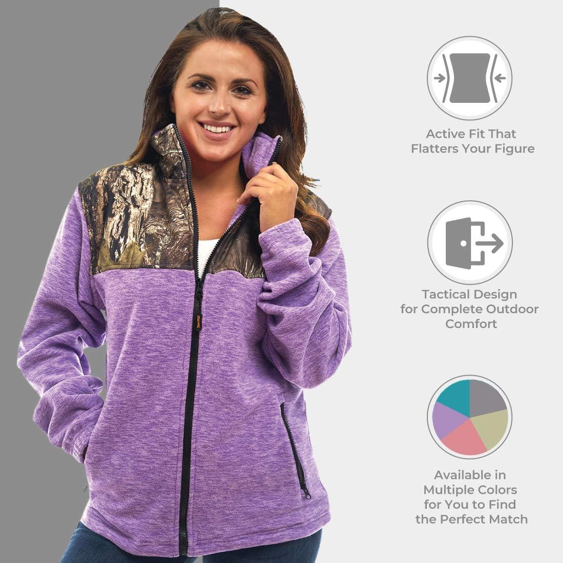 TrailCrest Women’s C-Max Full Zip Polar Fleece Jacket Mossy Oak Camo Patterns(Purple Heather – Country Dna)