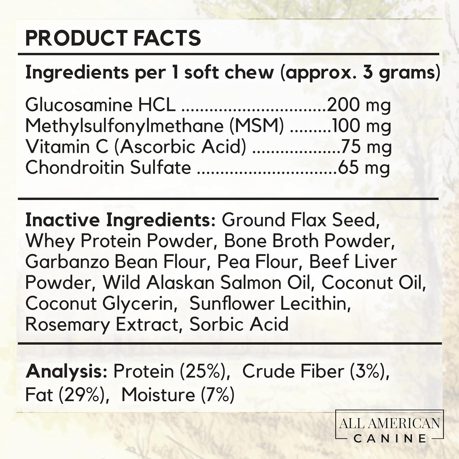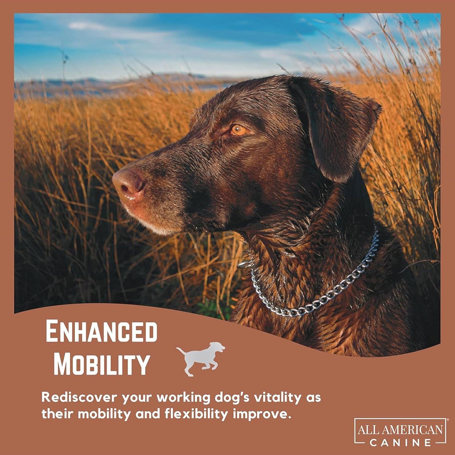 JOINT HEALTH DOG SUPPLEMENT: Provide your cherished pets with the pain relief they require by giving them All American Canine Hip & Joint Support Soft Chews for Dogs Joint Health. These dog supplements, infused with hemp seeds, are designed to ease the discomfort resulting from their regular exercise routines.