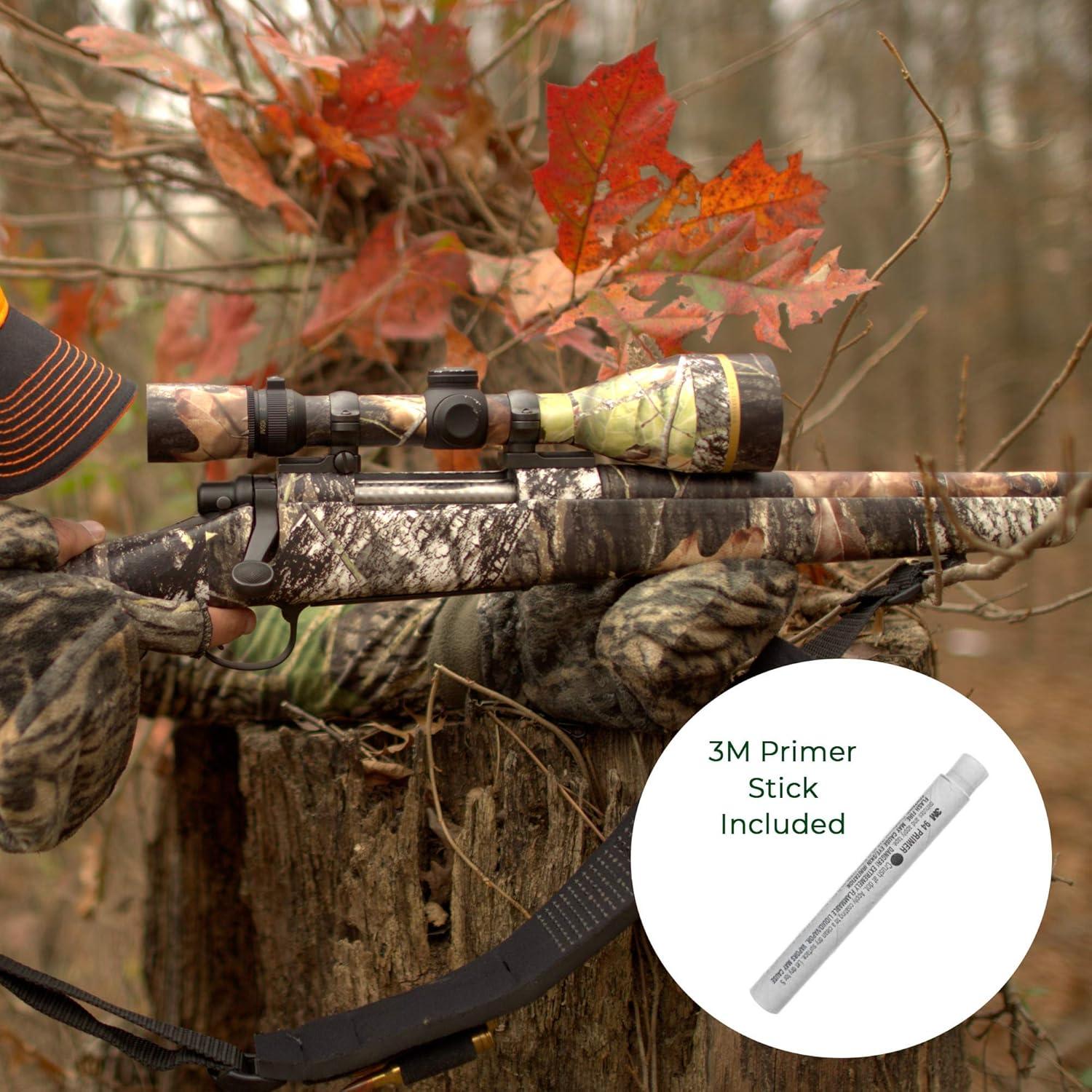 FULL COVERAGE: Camo Gun Kit Bundle for your shotgun or rifle, scope, and also a 3M Primer stick to prep your application surface. Kit includes camo vinyl in the pattern of your choice for covering most shotguns or rifles and their scope with Mossy Oak camo.