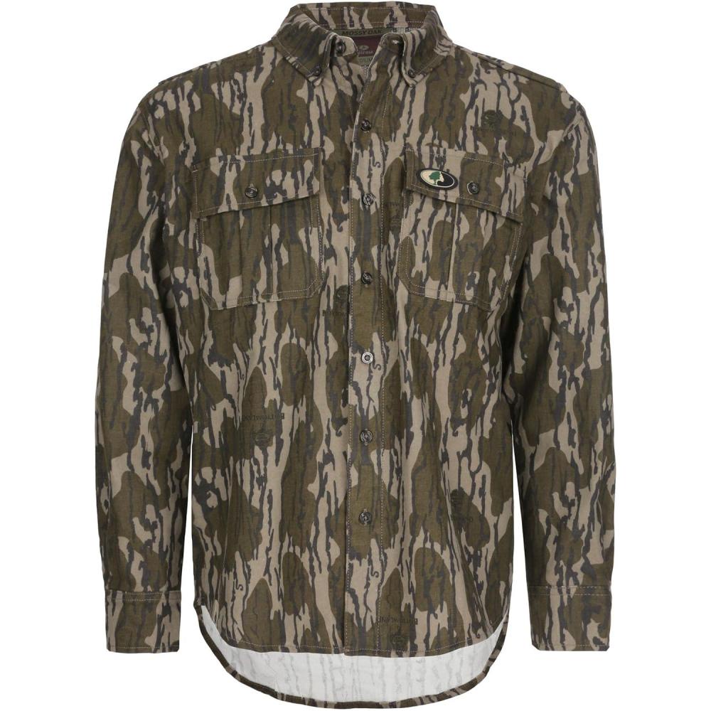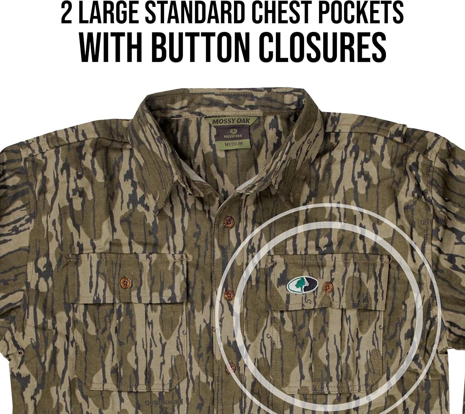 Mossy Oak Chamois Hunting Camo Shirt for Men | Heavyweight Cotton, Button Down Shirt with Pockets(Original Bottomland)