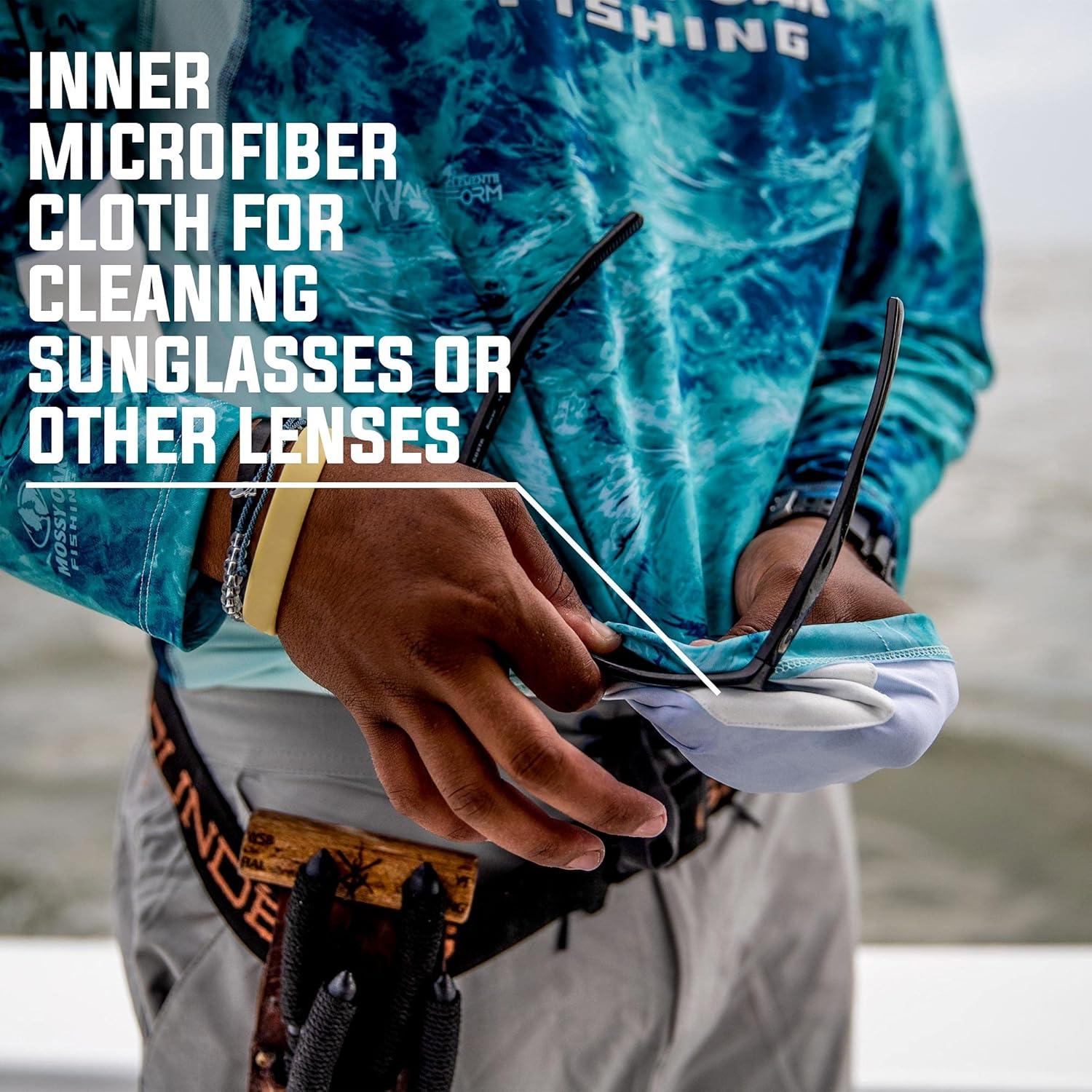 ADVANCED MATERIAL Made with 88% Polyester/12% Elastane main body fabric and a 100% polyester mesh back panel for added ventilation – All powered by Hydroplex technology COMFORT Advanced moisture wicking, quick dry material for a natural cooling effect that offers up to 30% reduction in body surface temperature while also providing up to 40+ UPF protection. VERSATILITY The material features cooling & moisture wicking capabilities, making these shirts ideal for all outdoor activity in and out of the water. Perfect for fishing, boating, sailing, swim wear, hiking, exercising and also look great for casual or work wear. FUNCTIONALITY Advanced materials and design make this the ideal inshore, offshore, saltwater, and freshwater fishing shirt for all day comfort. Also features a microfiber cloth inside the front left side for cleaning sunglasses, eyeglasses, or phones.
