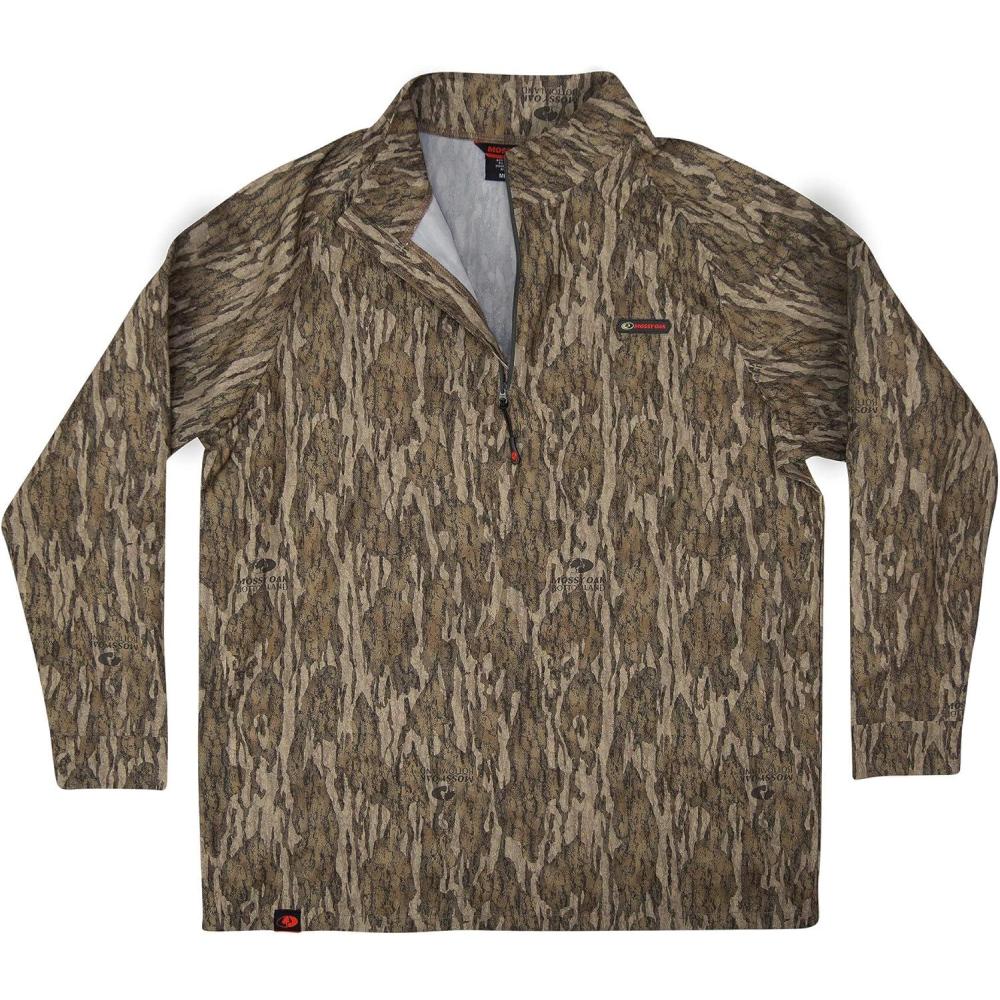 Mossy Oak Men’s Hunting Shirts Lightweight Camo Tibbee Tech Stretch Quarter Zip(Bottomland)