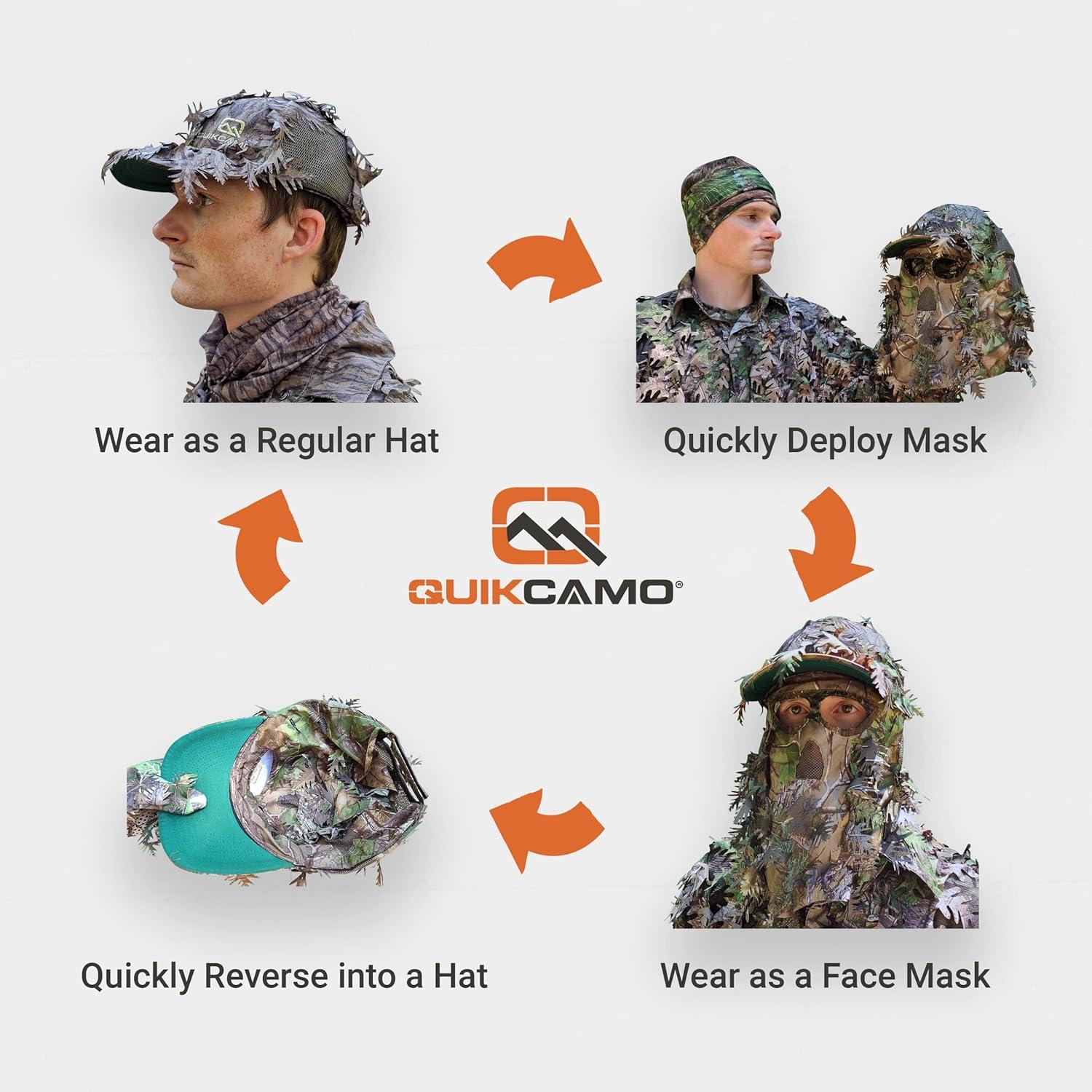 QuikCamo Lightweight 3D Leafy Camo Face Mask & Hat for Hunting, OSFM Adjustable Camouflage Hat, Mossy Oak & Realtree(Realtree Xtra Green Leafy Camo)