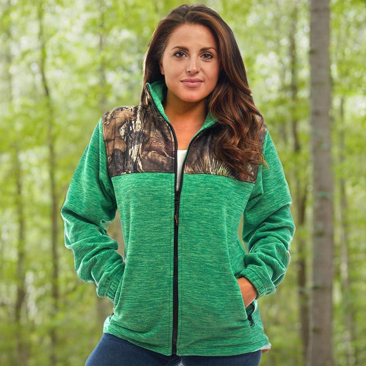TrailCrest Women’s C-Max Full Zip Polar Fleece Jacket Mossy Oak Camo Patterns(Green Heather – Breakup Country)