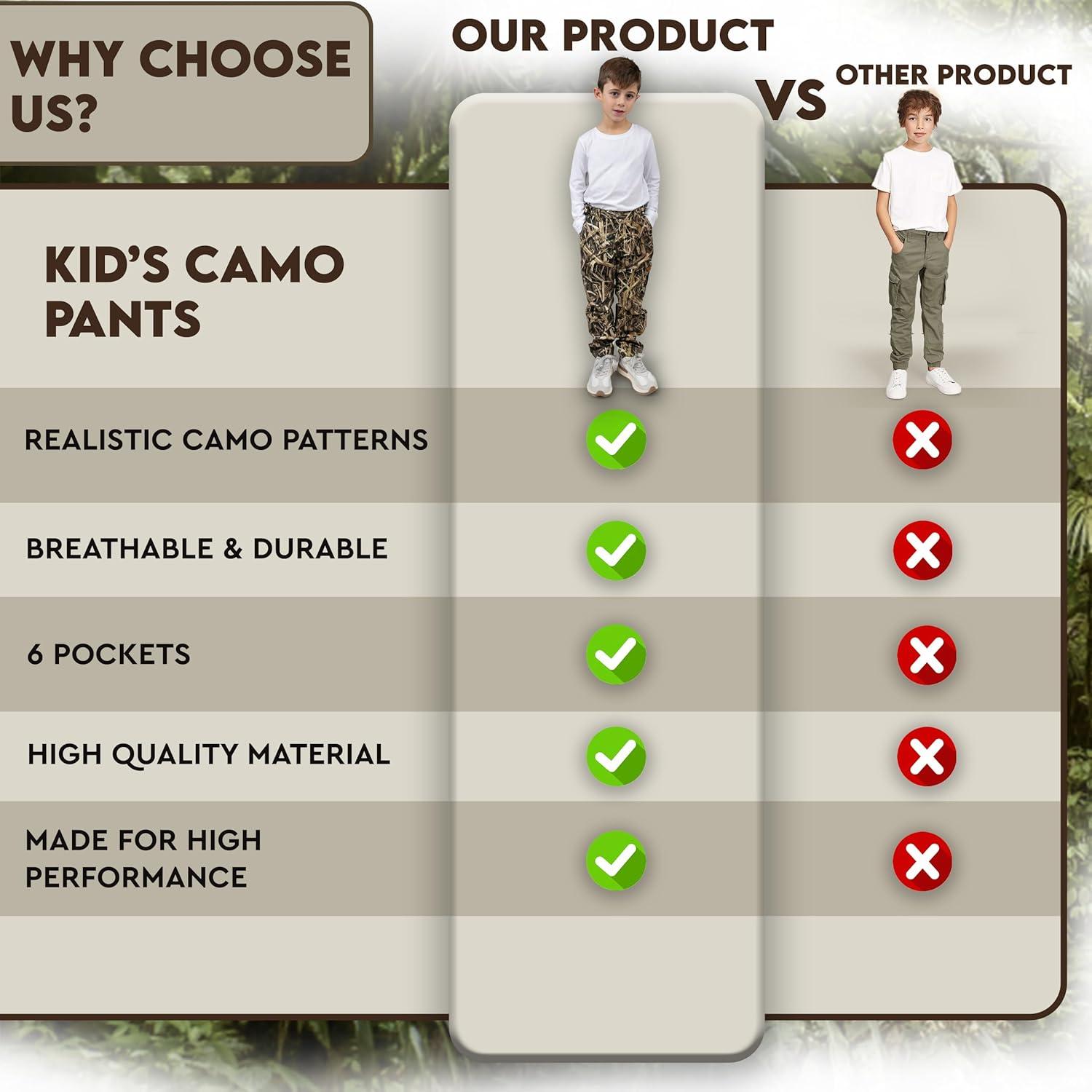 TrailCrest Youth Kids Camo Hunting Cargo Pants | 6 Pockets | Mossy Oak Break-Up Country™ (Improved Specs)(Shaddow Grass Blades)