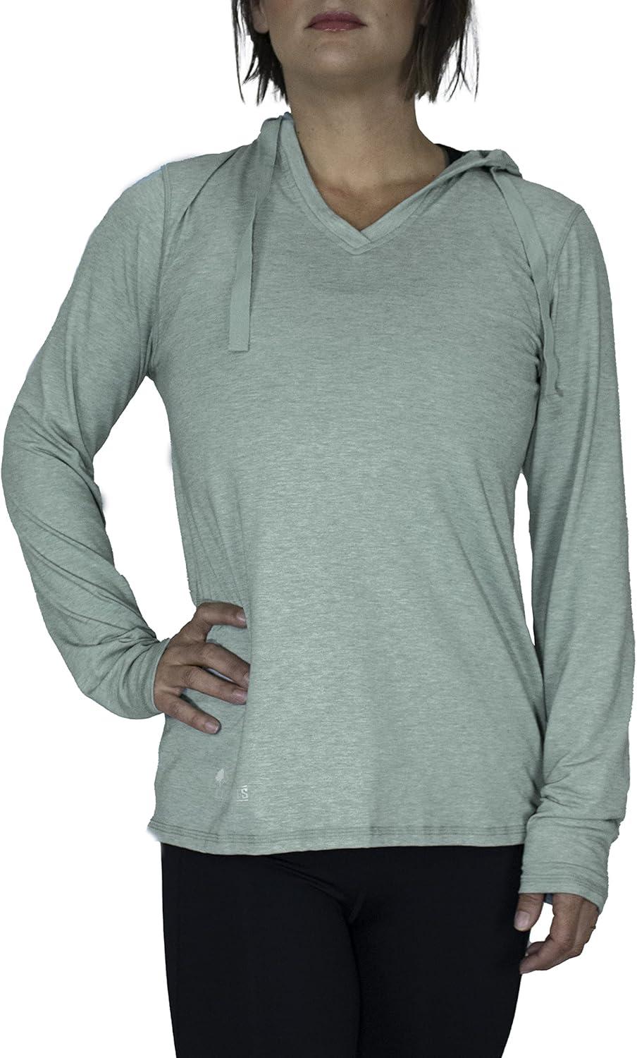 Women’s Long Sleeve V-Neck UPF 50 Quick Dry Sun Protection Lightweight Outdoor Hoodie(Aquifer Heather)